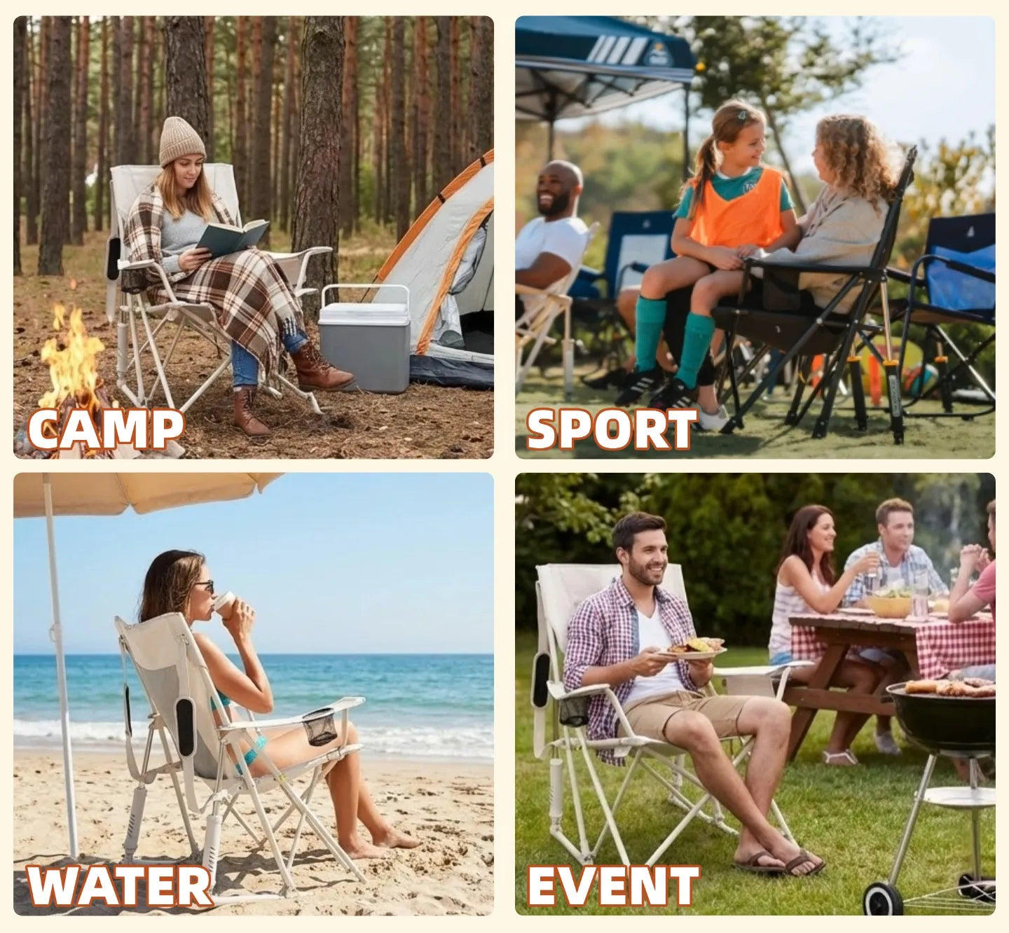 Patented Spring Comfort — Relax at Campsites, Beaches & Game Days
